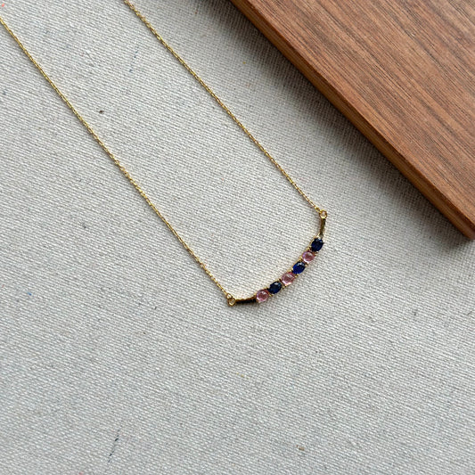 Sapphire And Pink Sapphire Curved Gold-plated Sterling Silver Necklace