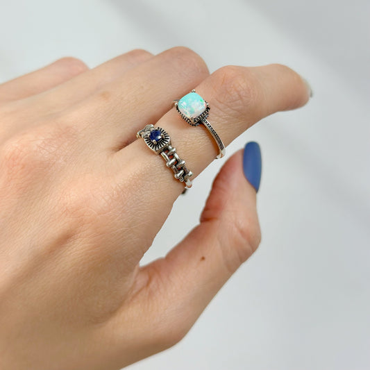 Sapphire Woven Cutout Adjustable Sterling Silver Ring