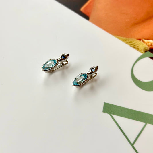 Blue Topaz And Sappire Sterling Silver Ear Hoop