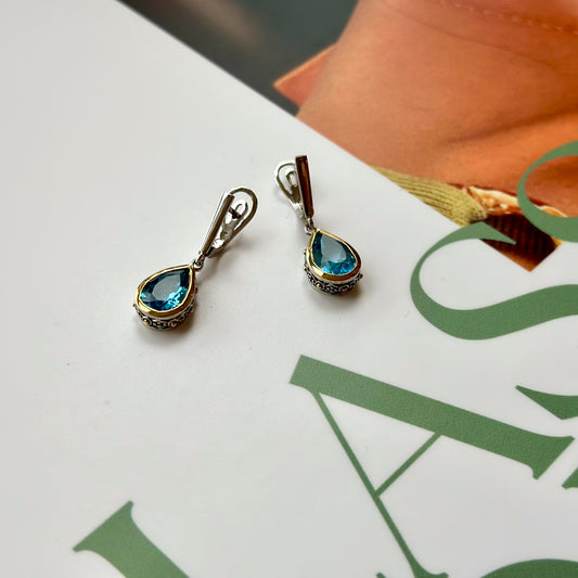 Ruby And Topaz Two Tone Dangle Sterling Silver Earring