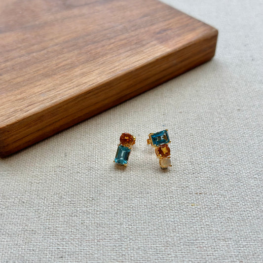 Topaz And Citrine Mixed Opal Gold-plated Ear Stud