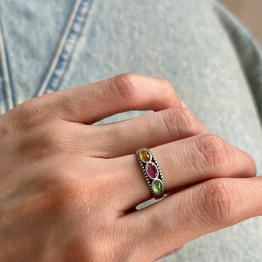 Tourmaline Mix Eternity Adjustable Sterling Silver Ring