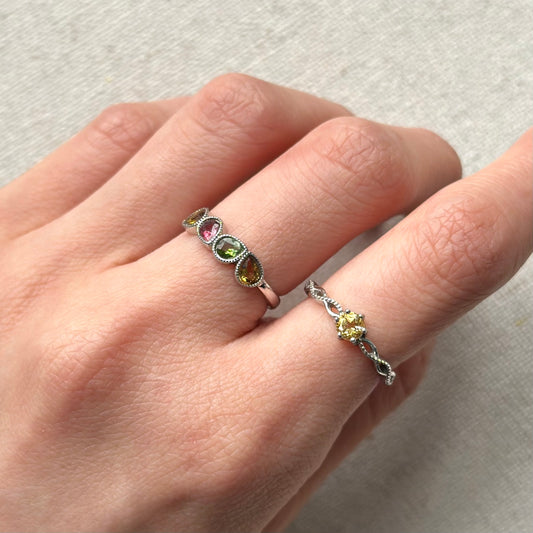 Mixed Tourmaline Prong Set Adjustable Sterling Silver Ring