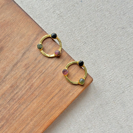 Tourmaline Raw Stone Gold-plated Ear Stud