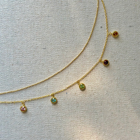 Mixed Tourmaline Dangling Double Layer Gold-plated Necklace
