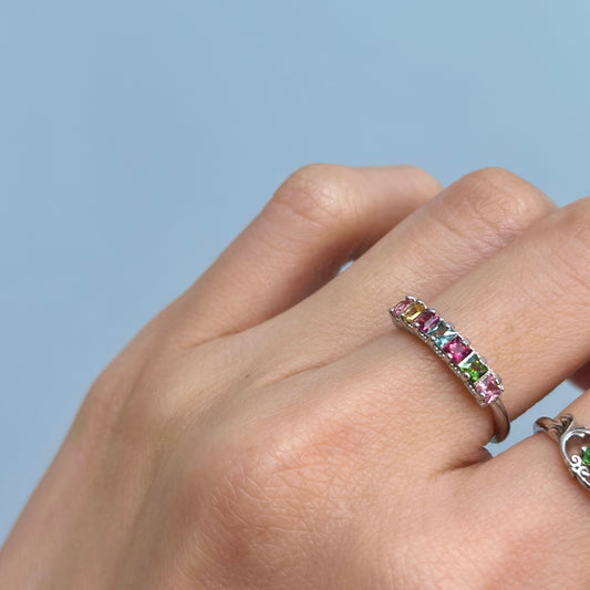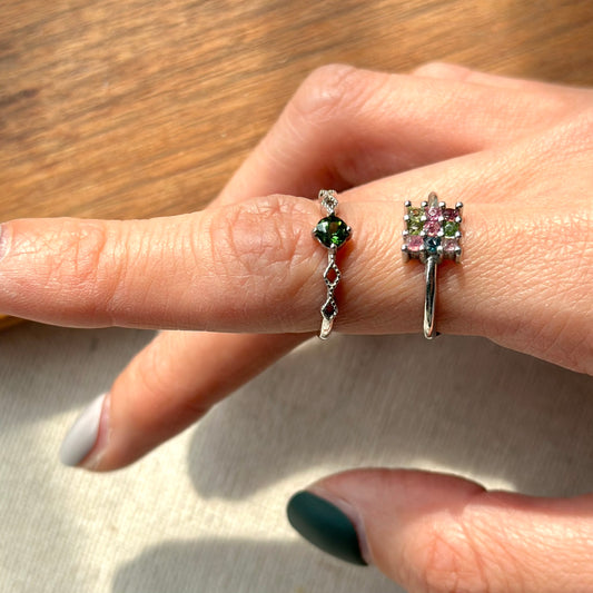 Tourmaline Mixed Square Adjustable Sterling Silver Ring