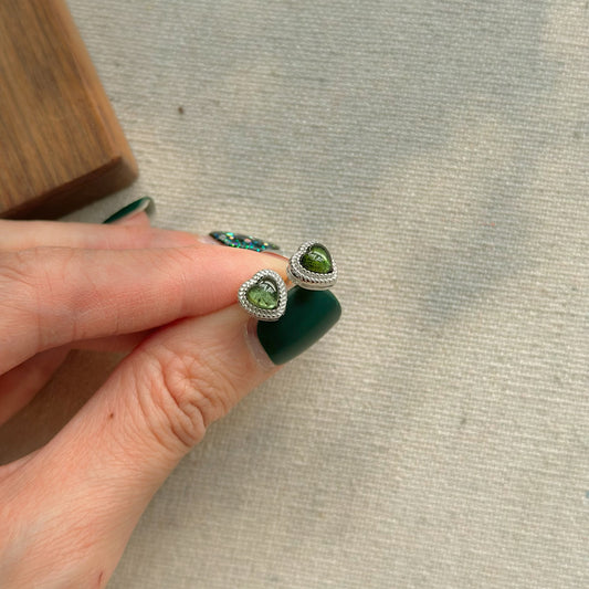 Green Tourmaline Heart Sterling Silver Ear Stud