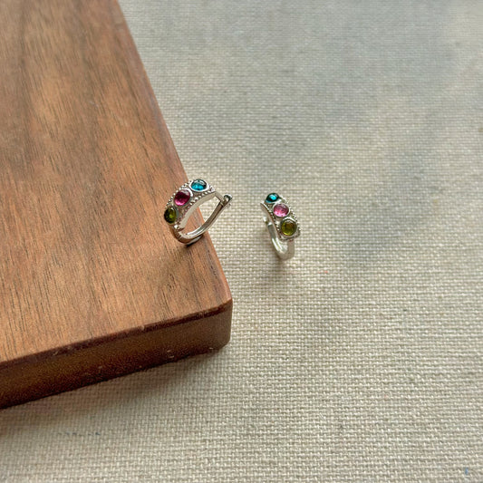 Multi Tourmaline Sterling Silver Ear Hoop
