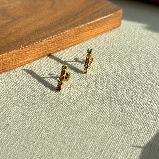Tourmaline Mixed Gold-plated Sterling Silver Ear Stud
