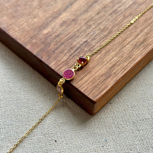 Tourmaline And Druzy Adjustable Gold-plated Bracelet