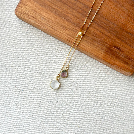 Watermelon Tourmaline And Moonstone Y-shaped Gold-plated Sterling Silver Necklace