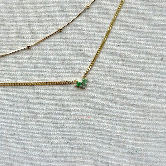 Green Tourmaline Double Layer Mixed Chain Gold-plated Sterling Silver Necklace