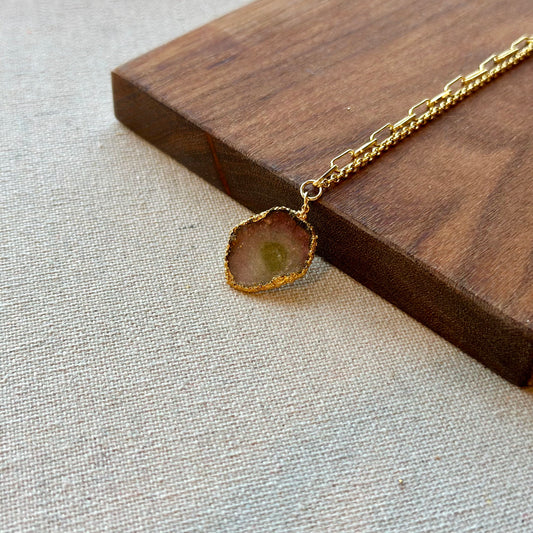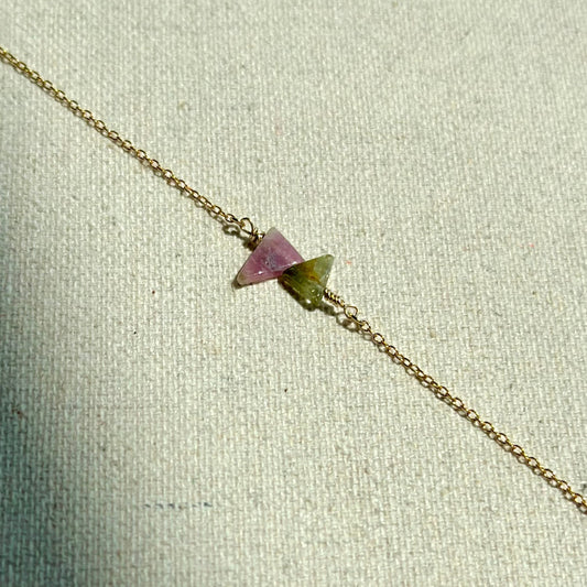 Watermelon Tourmaline Asymmetric Gold-plated Sterling Silver Necklace