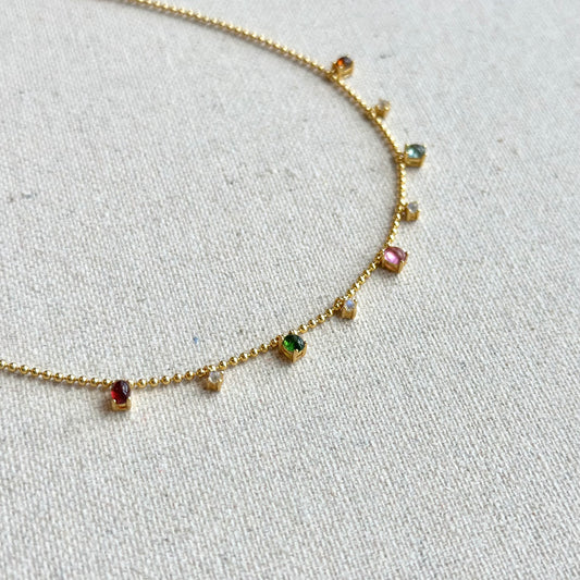 Watermelon Tourmaline Dropped Dainty Chain Gold-plated Sterling Silver Necklace