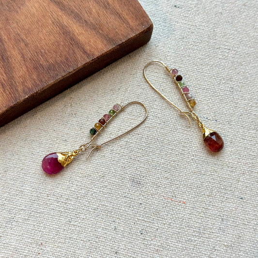Citrine Raw Stone And Mixed Tourmaline Gold-plated Earring
