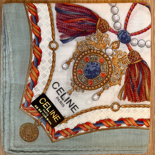CELINE PARIS Vintage Light Blue Pearl Printed Handkerchief