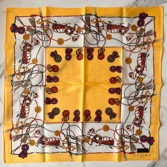 CELINE PARIS Vintage Yellow Horse Printed Handkerchief