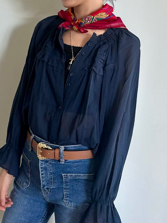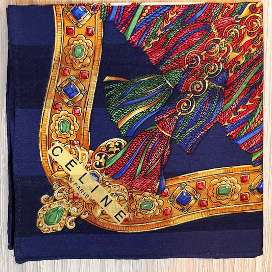 CELINE PARIS Vintage Navy Gemstone Printed Handkerchief