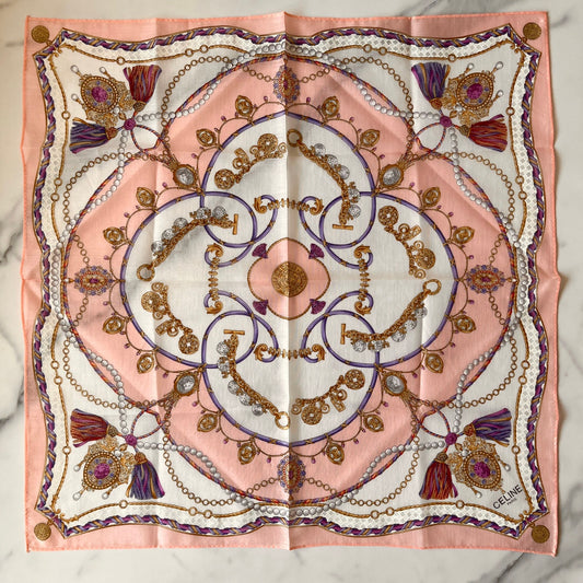 CELINE PARIS Vintage Pink Pearl Printed Handkerchief