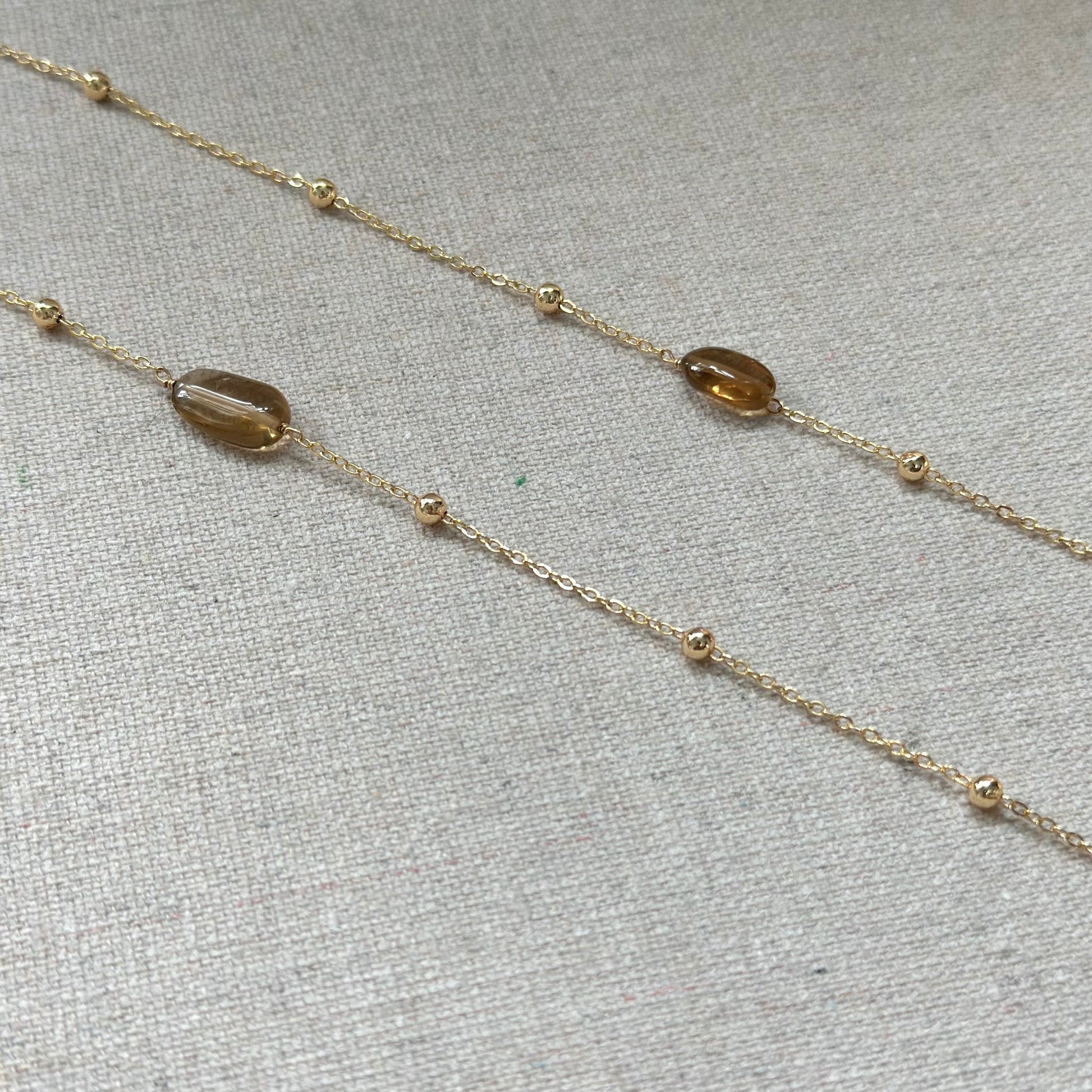 - Details: Length around 68cm/Stone size around 3X2cm/Dotty chain details/Necklace can be worn alone or with other necklace together /Can be shorten the length by request