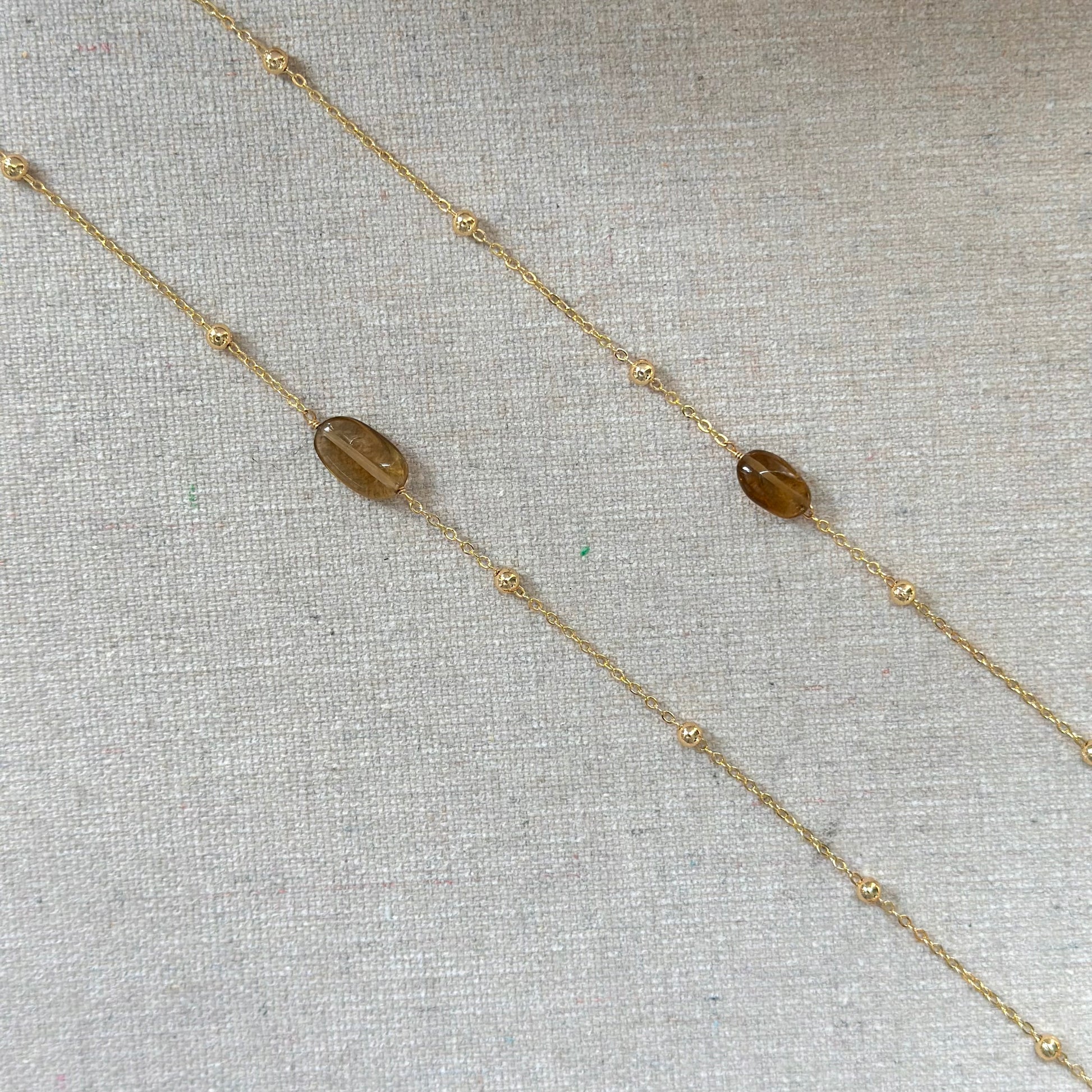 Agate And Smoky Quartz Gold-plated Long Necklace