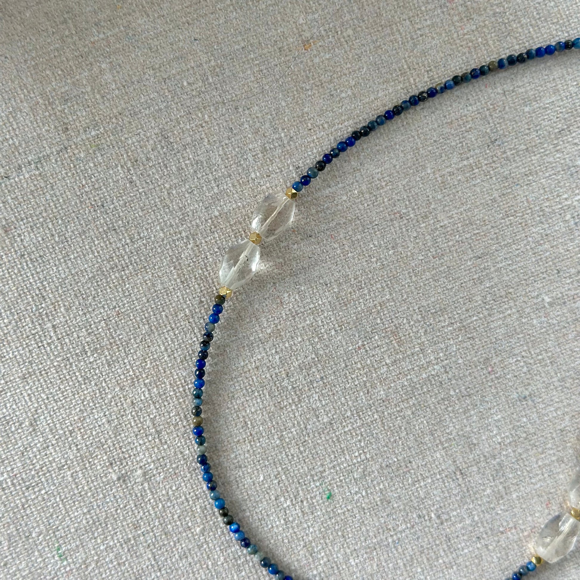 Lapis And Aquamarine Beaded Asymmetric Necklace