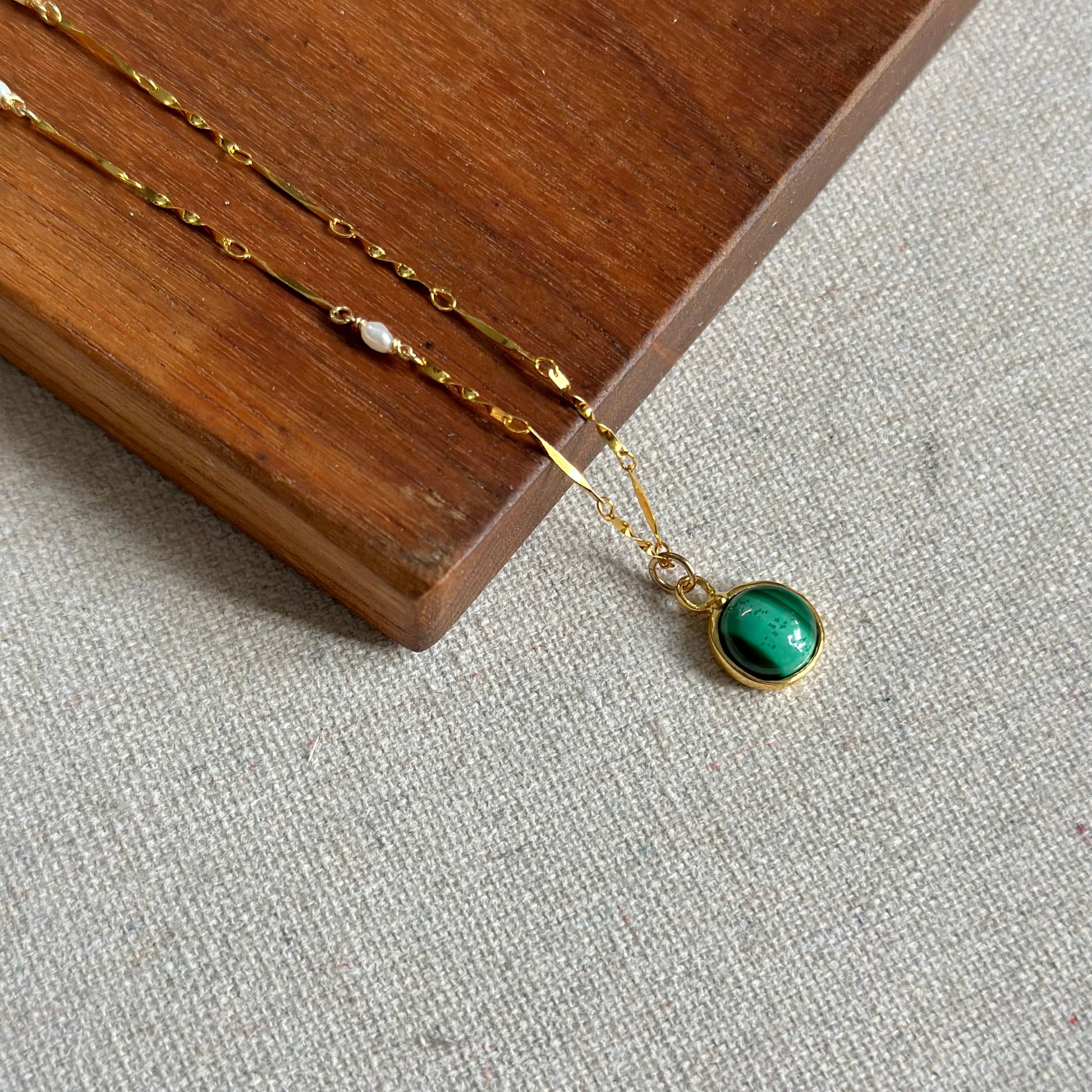 Malachite And Freshwater Pearl Gold-plated Necklace