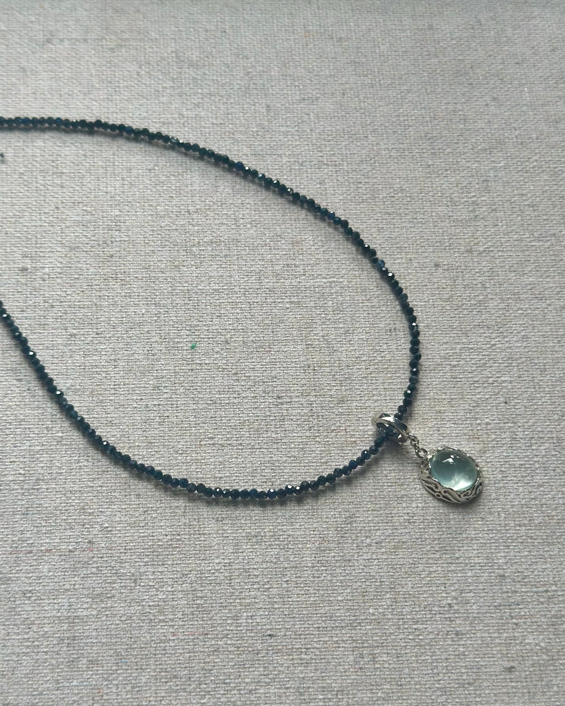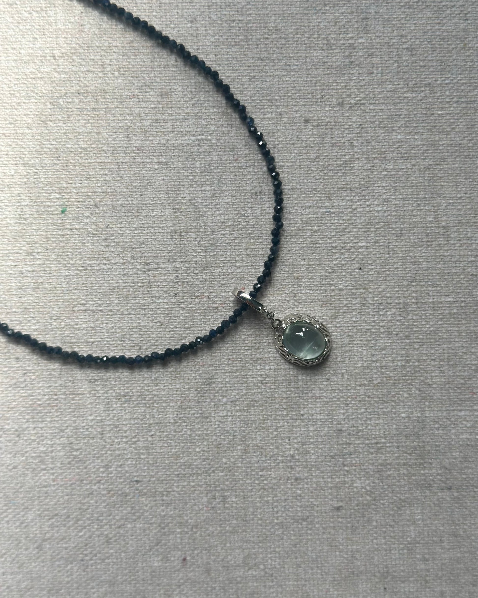- Details: Length around 39cm+2.5cm extension/Around 2mm bead/Detachable prehnite pendant/Can be worn alone or layered with other necklaces/Two-way design/Mini branded charm details