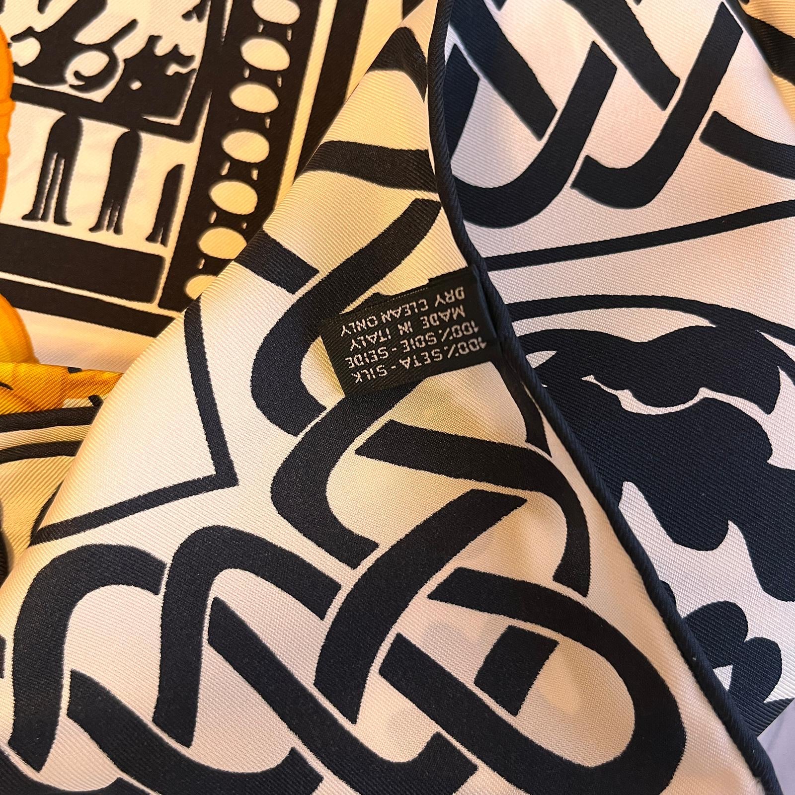 - Details: Celine vintage scarf in black and white. Decorated with coins and chains patterns.