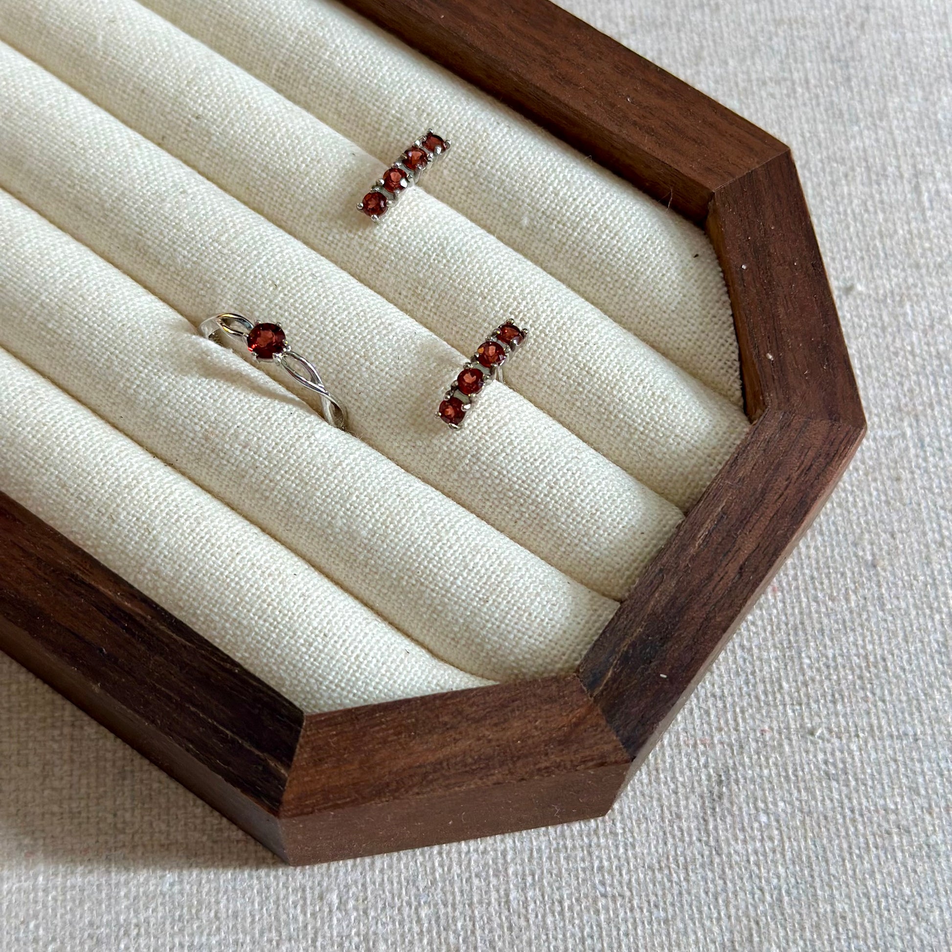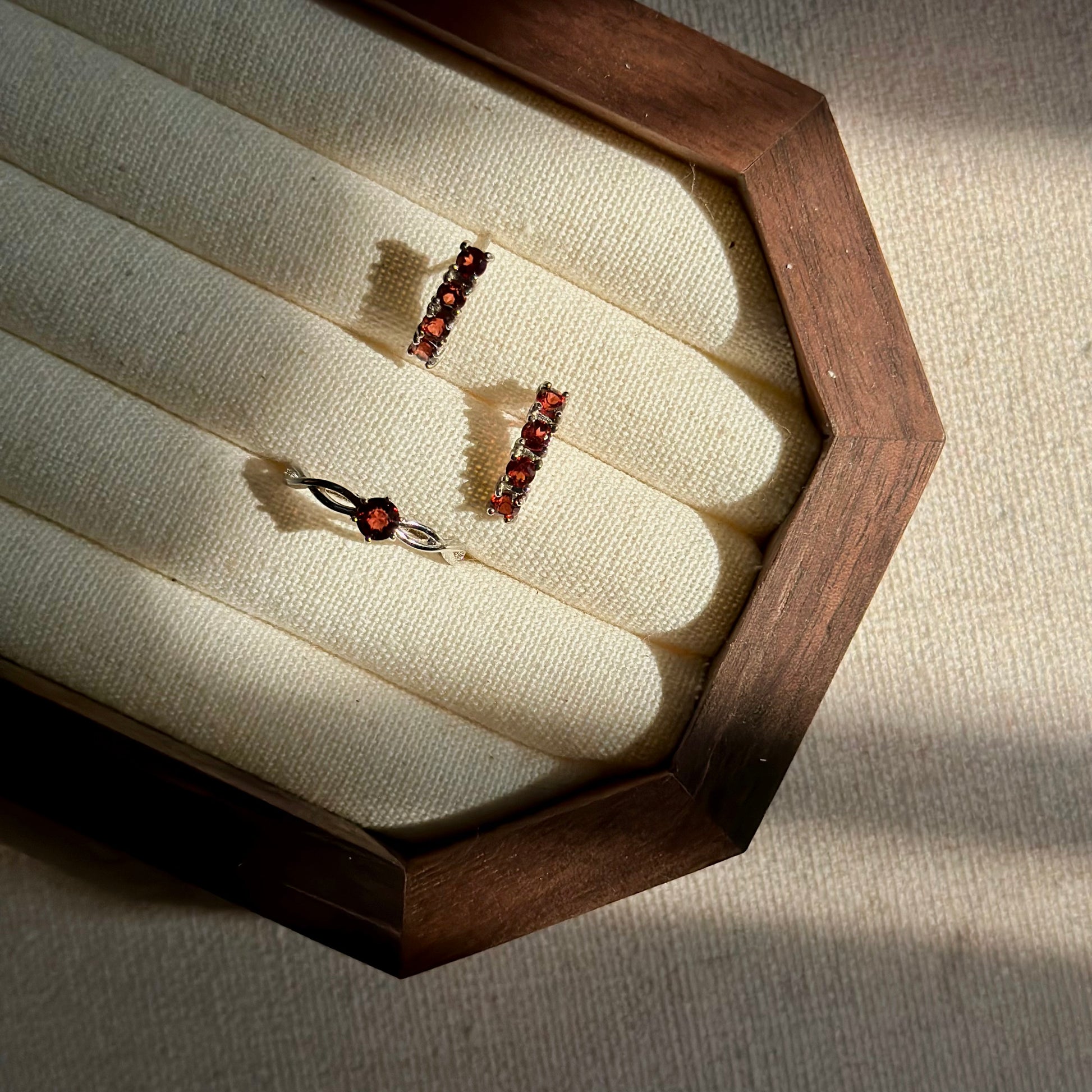 CHRISTMAS SET (2 ITEMS) Garnet Sterling Silver Earring & Ring