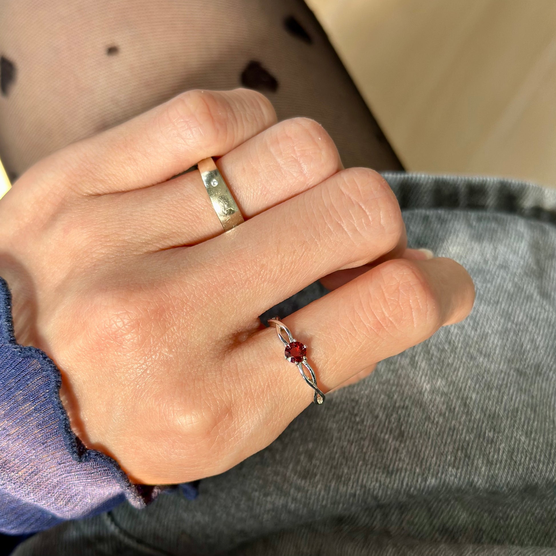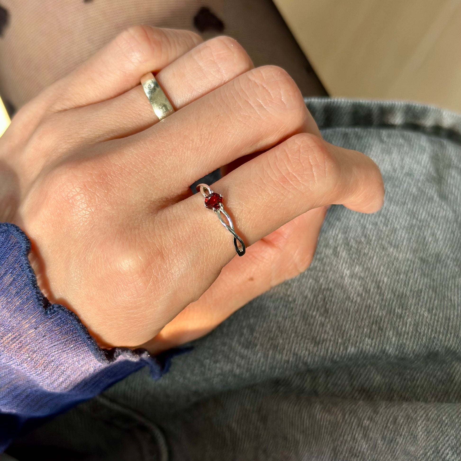 - 2 Items set : 1)Garnet Sterling Silver Earring 2)Garnet Sterling Silver Adjustable Ring
