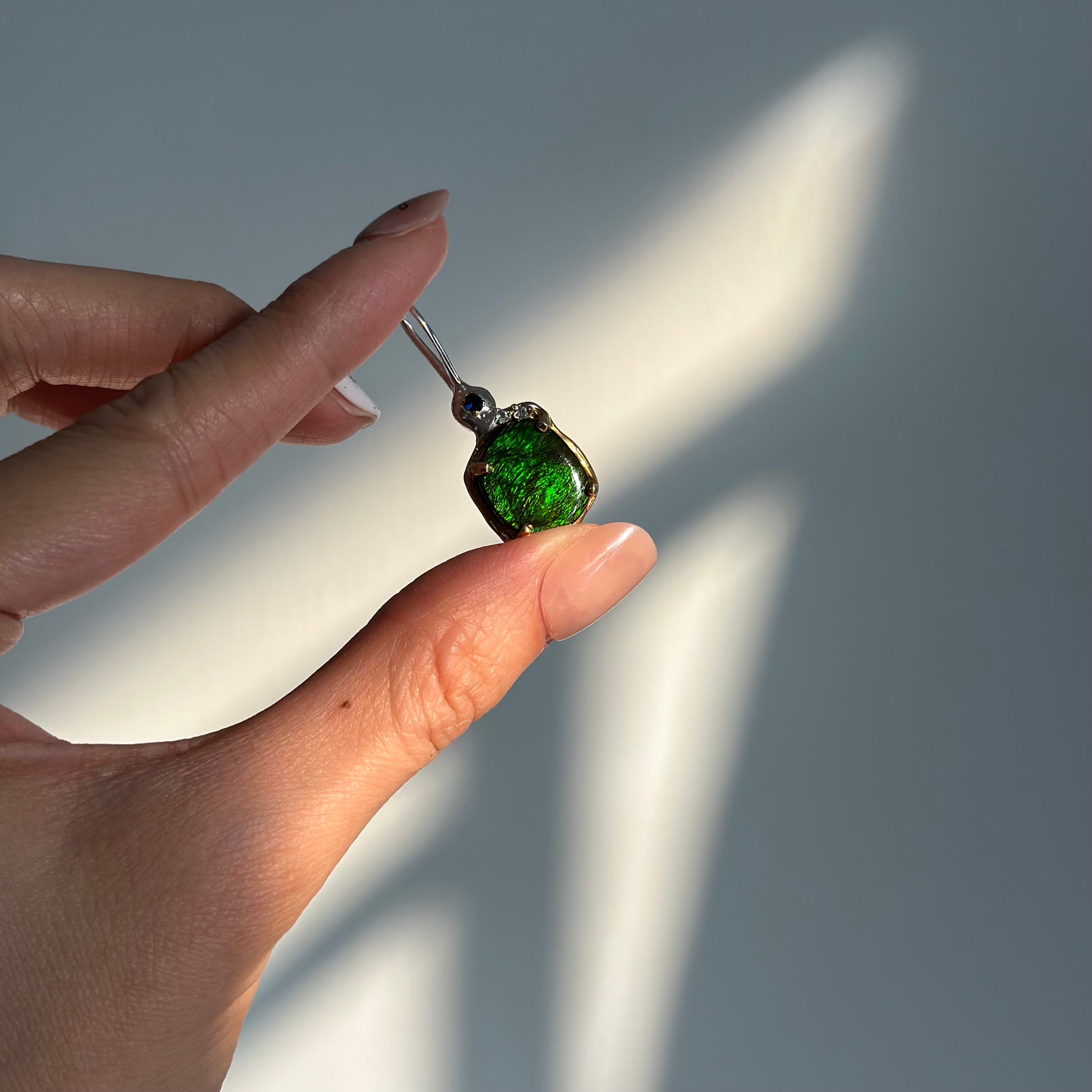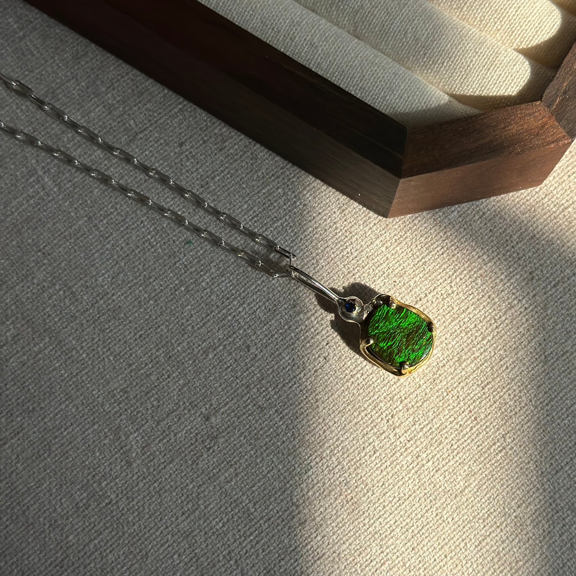 CHRISTMAS SET (2 ITEMS) Ammolite Sterling Silver Long Necklace & Ring