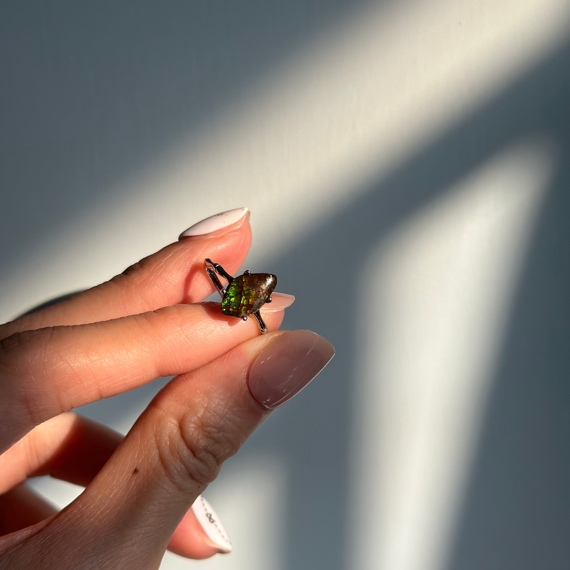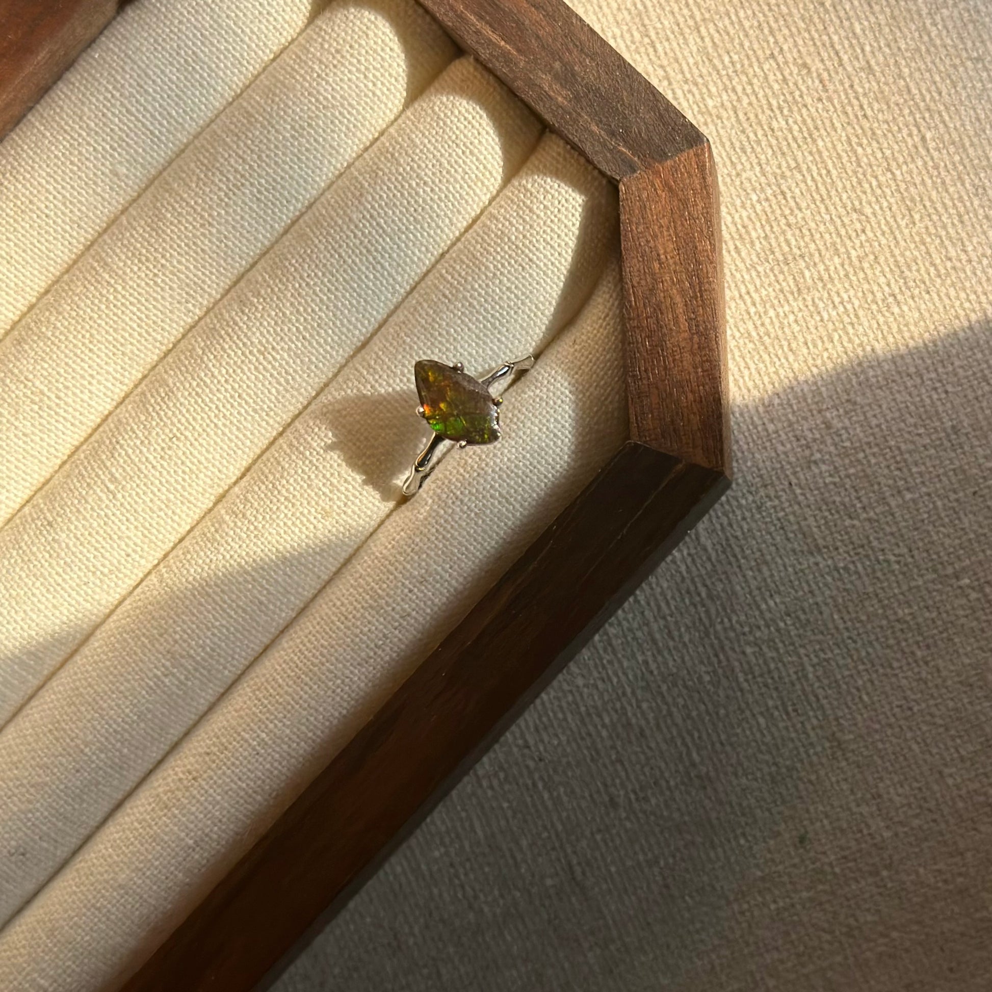 - 2 Items set : 1)Ammolite Sterling Silver Long Necklace 2)Ammolite Sterling Silver Ring