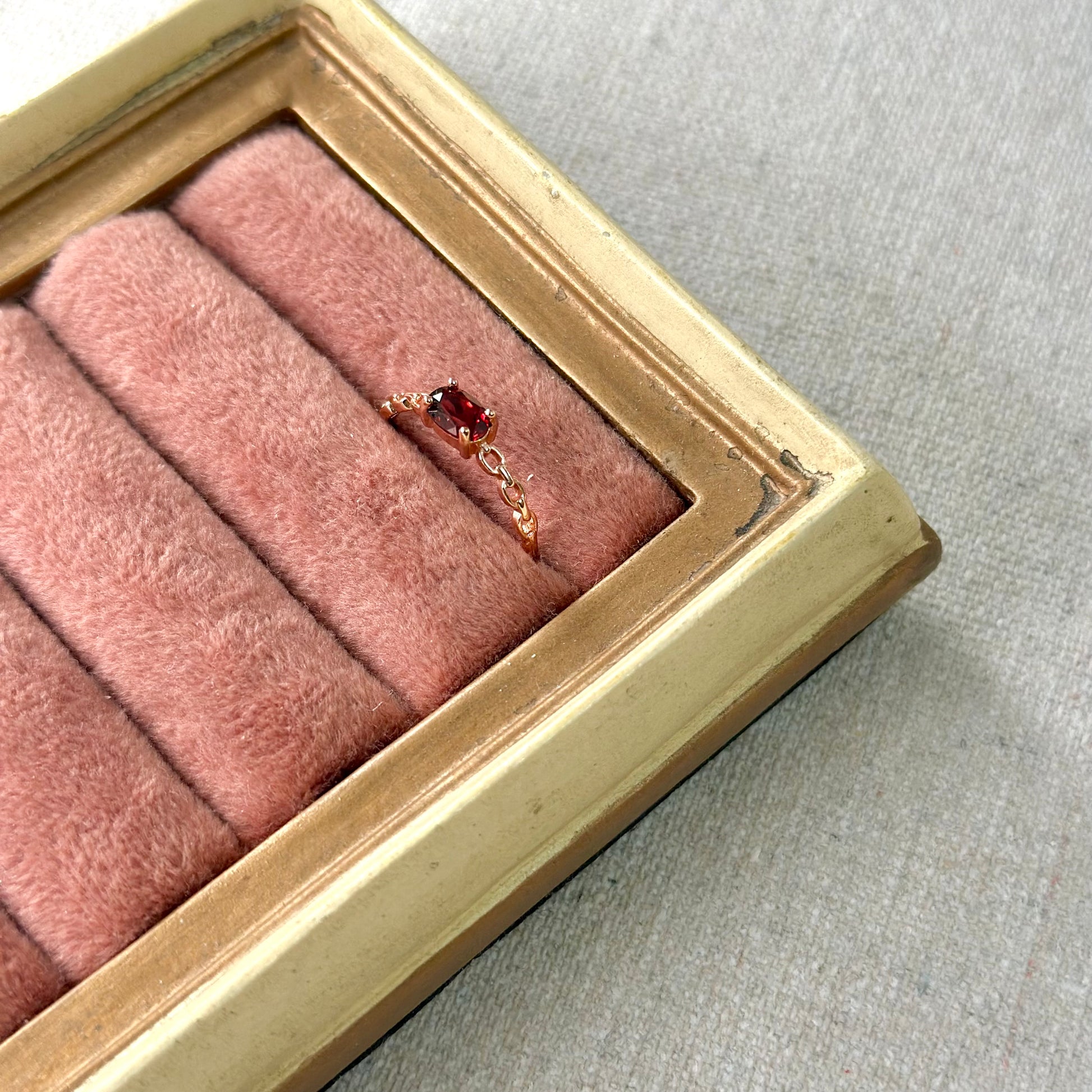 - 2 Items set : 1)Garnet Beaded Rose Gold-plated Necklace 2)Garnet Adjustable Ring
