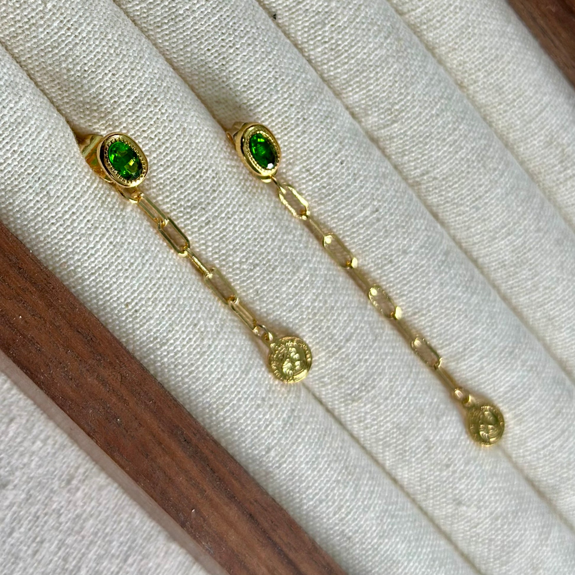 - Details: Diposide stud size around 0.3X0.5cm/Chain details/Two-way design/Dangling length around 4 & 5cm