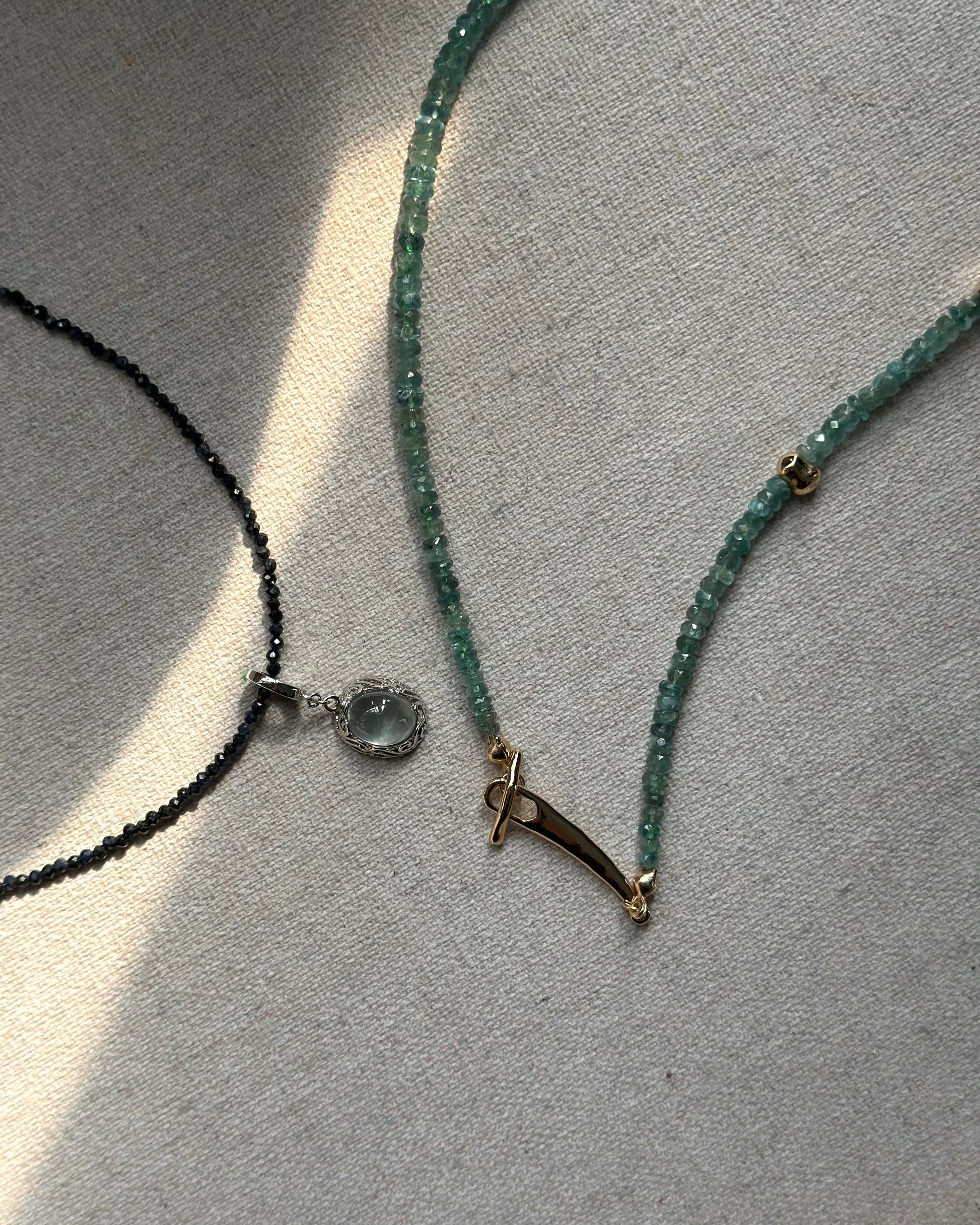 Emerald Beaded Hoop Toggle Necklace