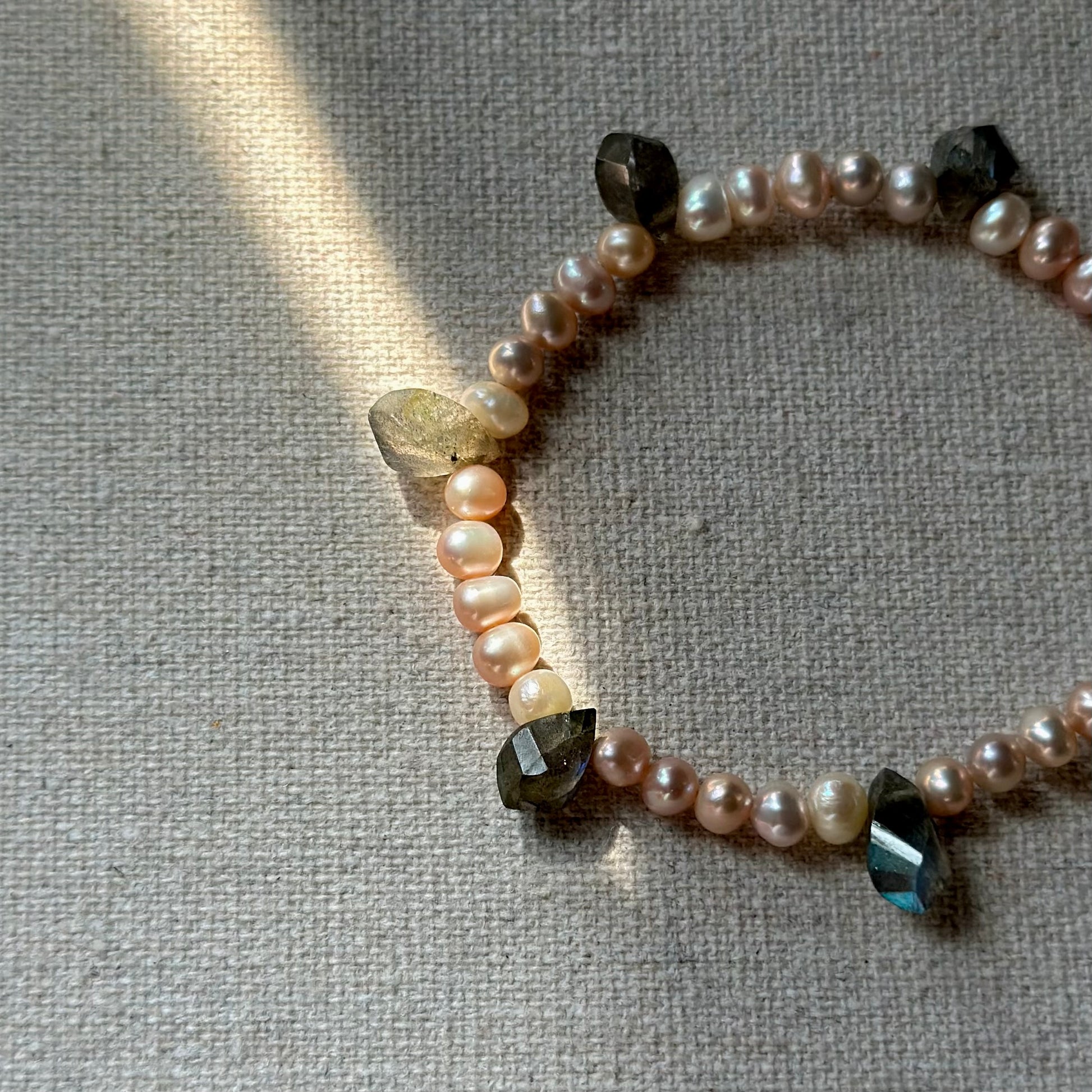 Freshwater Pearl And Labradorite Beaded Bracelet