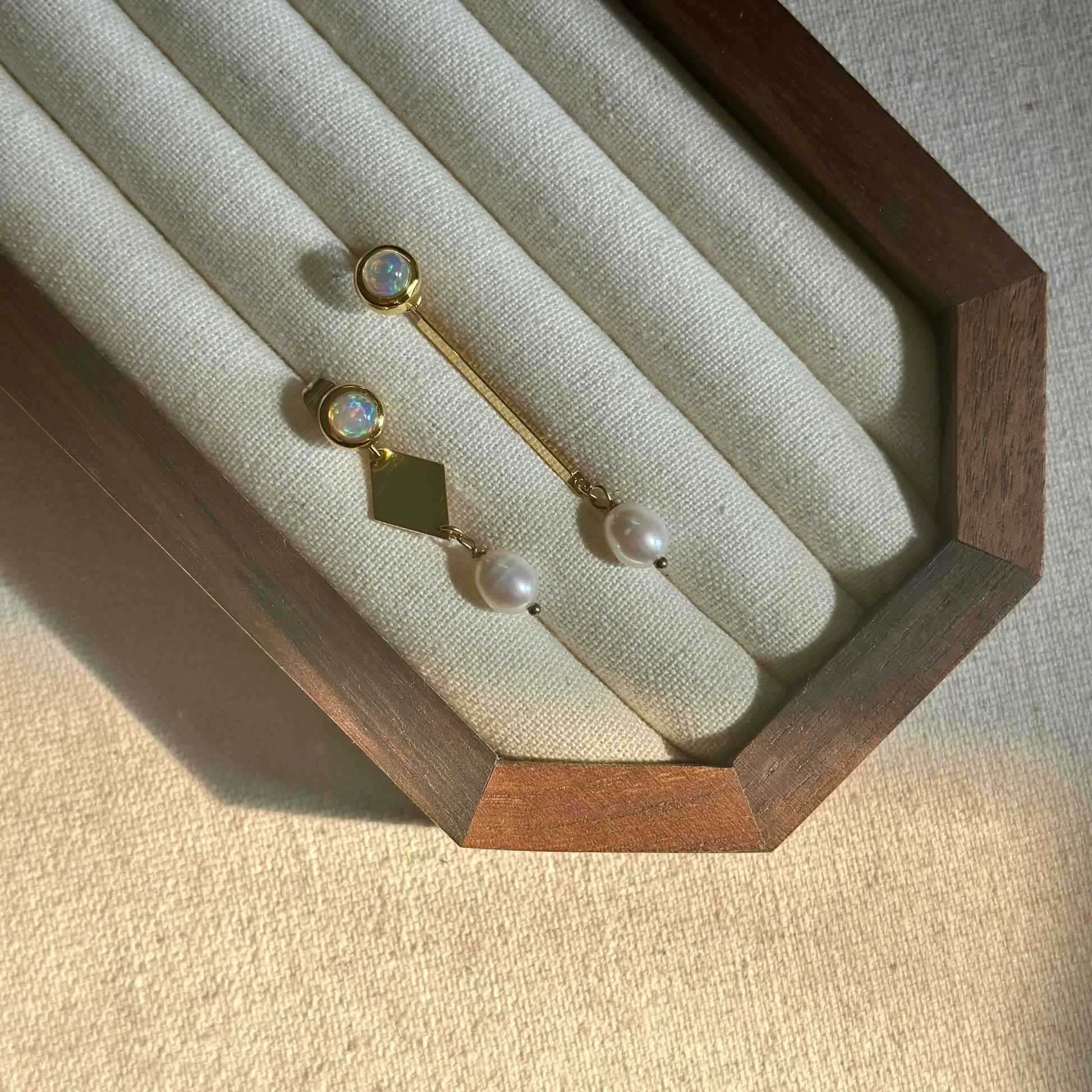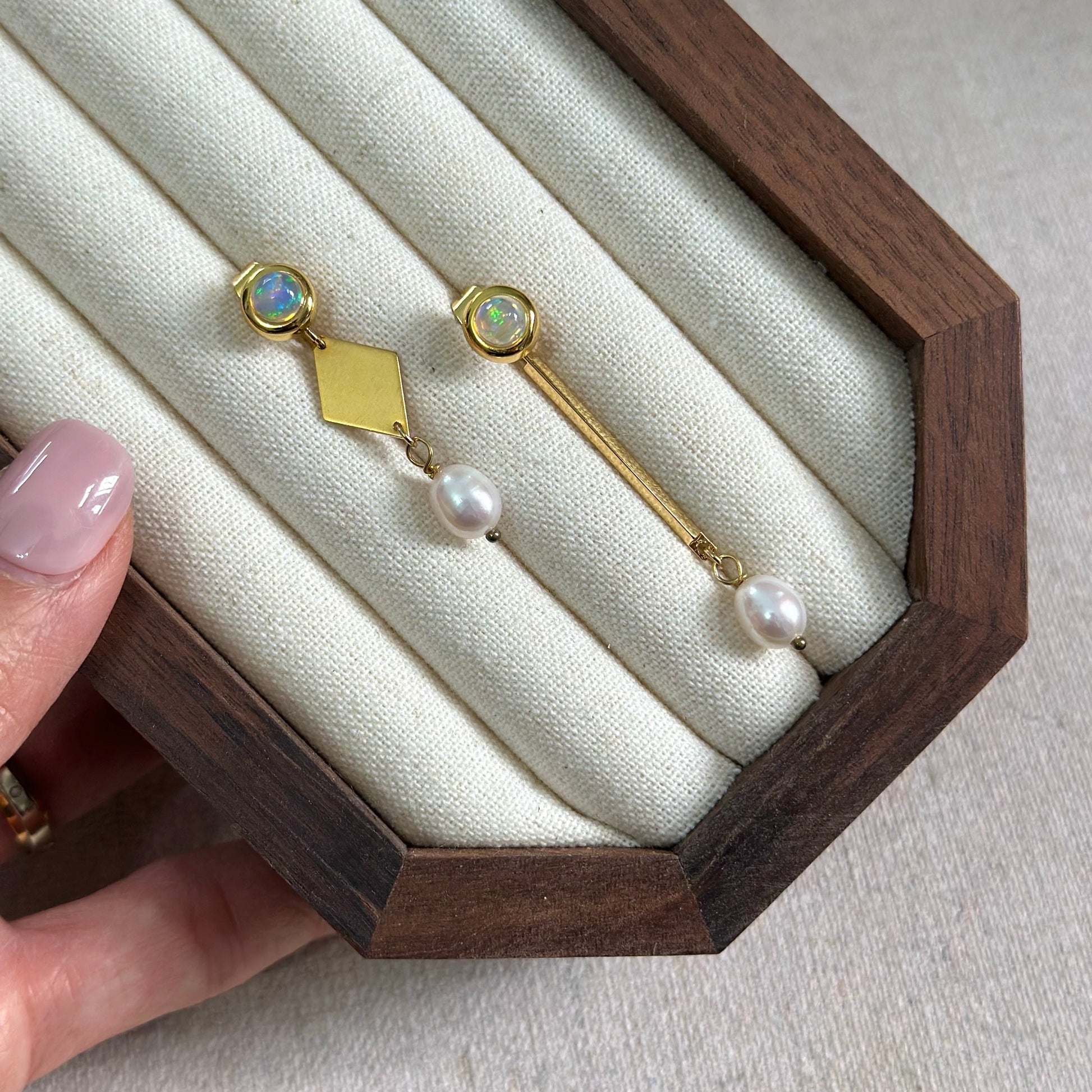 Opal And Freshwater Pearl Geometric Two-way Earring